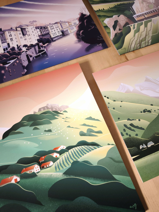 Illustration imprimée sur plaque d'aluminium 3 mm, au Pays Basque. La plaque est équipée d'un crochet, prête à suspendre.